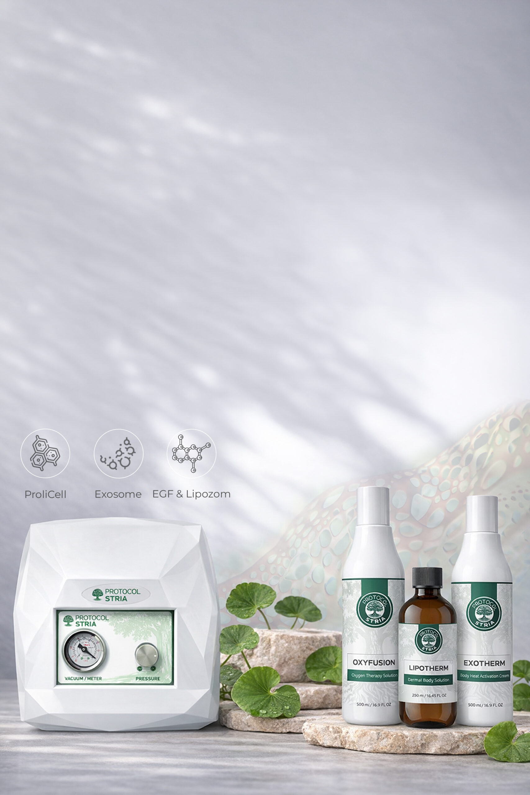 Protocol Stria sistemi, ProliCell®, Exosome, EGF ve Lipozom teknolojilerinin birleşimiyle geliştirilmiştir. Gelişmiş aktif içerik teknolojileri ile formüle edilen Protocol Stria ürünleri, Kore kozmetik üretim teknolojileri kullanılarak üretilmektedir. Bu yaklaşım, cilt bakım sürecinin desteklenmesine yardımcı olur.